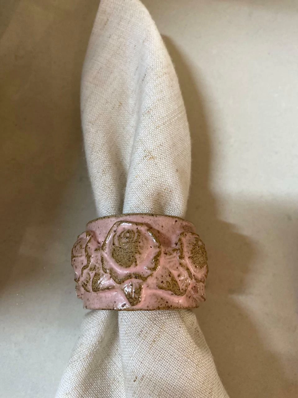 Contém: 6 anéis de guardanapo em cerâmica artesanal.