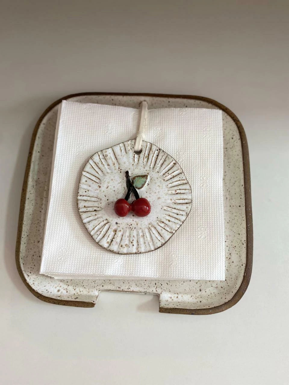 Ideal para acomodar guardanapos maiores, com um detalhe delicado em cerâmica que traz charme e originalidade para a mesa posta.